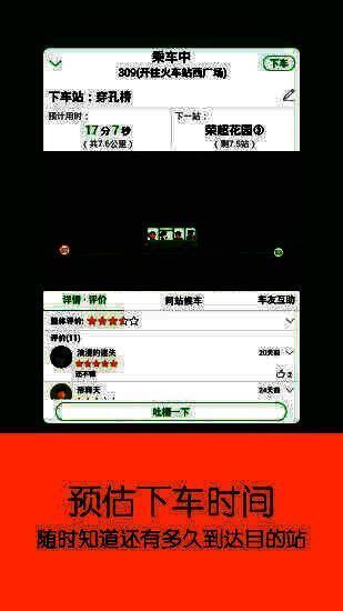 3、下车:到站下车提醒,对司机、乘务员等服务进行评价