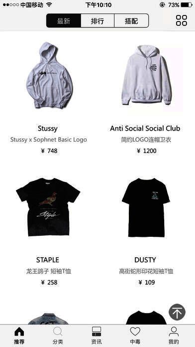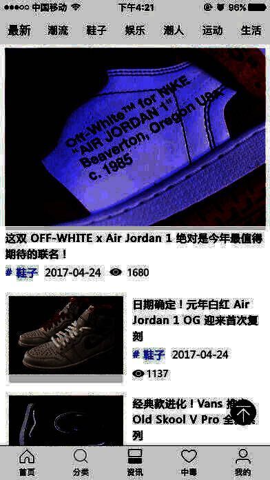 4、【资讯】搜罗全网潮流热点,包括:潮流动向、鞋履、运动、视频、滑板、娱乐、街拍、音乐、发售、动漫、游戏等,做最毒的潮流达人,从启动毒库开始。
