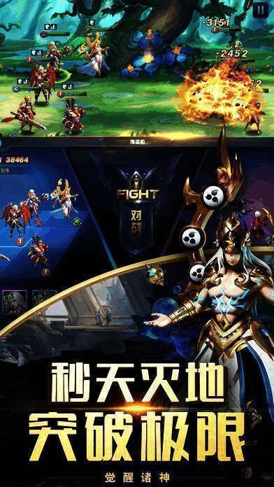 众神战场,随意分派阵容自由PK,全部英雄死亡才重置血量,挑战最强连杀。