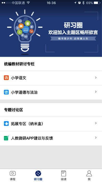 本应用集在线培训、精品课程、专业知识阅读、教学研修垂直社区为一体,围绕基础教育阶段国家统编教材、人教版新课标教材,提供精品课程内容,剖析新版教材,示范教学案例,指导教学盲点,组织教研活动,助力教师专业成长。为全国中小学教师和教研员创设以教材为核心的教研交流园地。