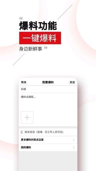 随时随地上传新闻事件的照片和文字,一键爆料身边新鲜事,百人爆料团等你来加入,更有红包等你领取;