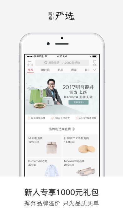 3、好的生活,没那么贵,网易严选是网易自营电商开发的一款海淘app,在这里,新人可领取1000元优惠券,福利多多,活动多多。