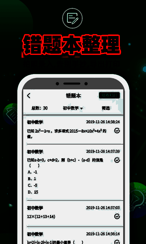 错题plus官方版凭借其智能化的学习功能、丰富的题库资源和便捷的操作体验,成为学生提升学习成绩的得力助手。无论是错题整理、难题解析,还是试卷组卷、知识巩固,错题plus都能提供专业、高效的解决方案,助力学生高效学习,轻松应对考试。