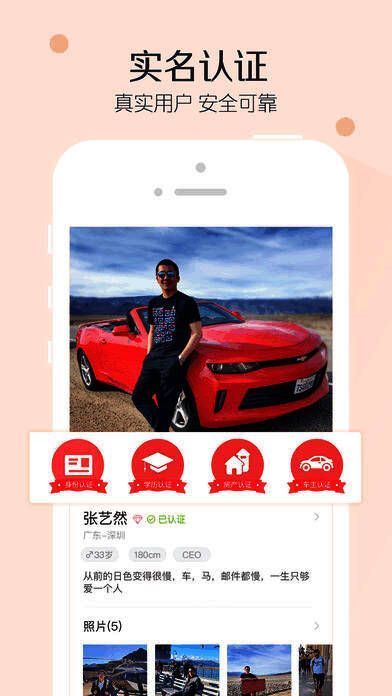 实名身份、职业、房车、芝麻信用多重认证体系,安全交友;