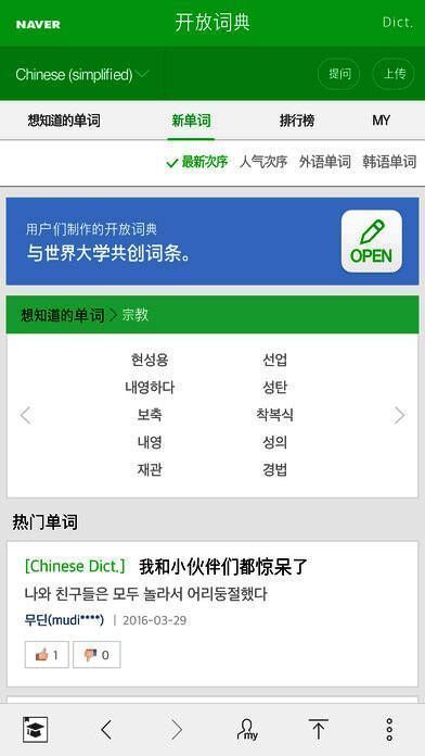 3、NAVER词典软件独具的,我手中的翻译家。