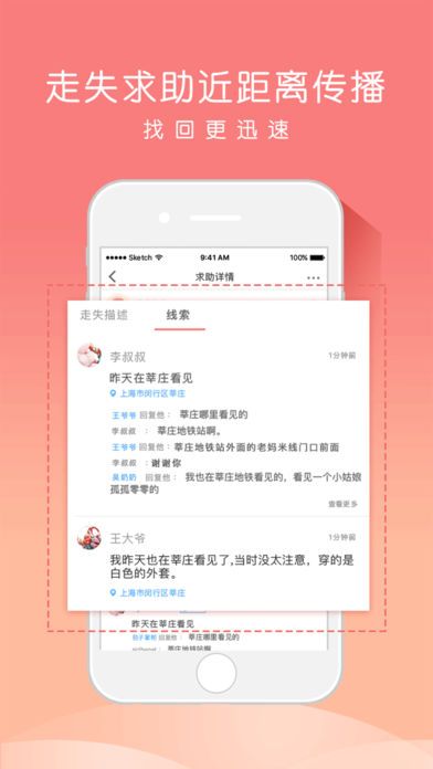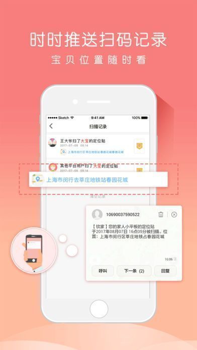 家人如果发现小孩或老人走失,只要一键发布求助,便可全民响应帮助您迅速寻找家人,为您提供家人线索,当路人发现走失者并扫描定位贴时,后台可准确获取家人位置信息,并以短信和APP推送方式即时将位置信息发送到紧急联系人手机;