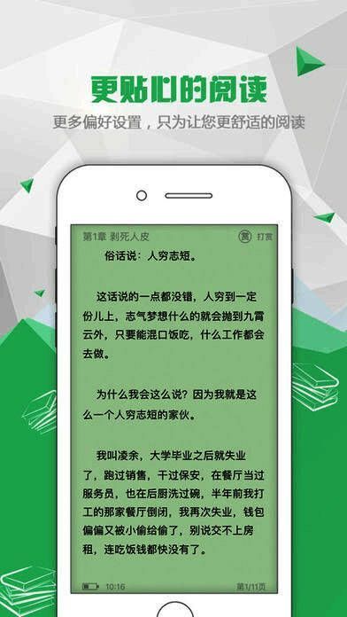 精排的文字,多种阅读配色方案,流畅的翻页,最重要的是永不闪退的稳定;
