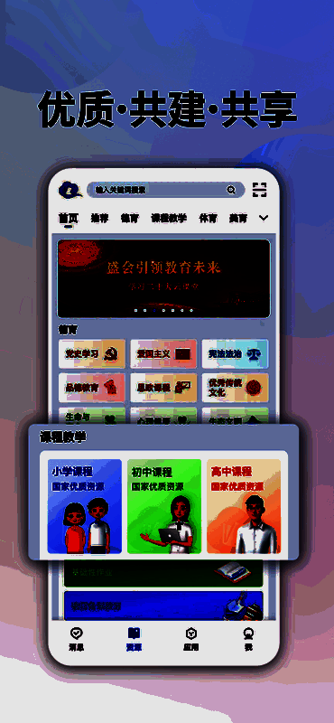 该平台的教学资源涵盖小学、初中到高中的全部课程,并配有电子教材,确保学习内容与全国教学大纲同步。此外,软件还包括党史学习、爱国主义教育、宪法法治、品德修养、劳动教育等思政类内容,帮助学生在德智体美劳各方面全面发展。
