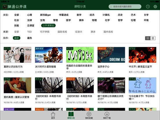 《网易公开课HD》是由网易推出的一款高清视频学习软件,是数千万爱学习的网友所钟爱的免费课程平台,在这里为网友们准备了众多课程,让爱学习想学习的你你能随时随地享受学习!