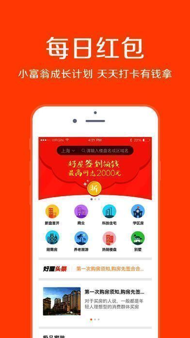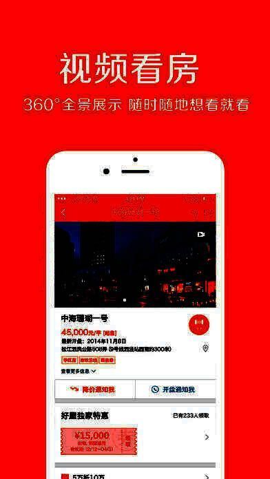 【服务更贴心 个性化定制】 贴心服务:楼盘降价、新盘开盘,第一时间获得消息 好屋礼遇:主题活动齐上阵,参与就能赢大奖 精品家装:大牌私人订制,量身打造理想家 微信登录:就要懒成精,微信一键登录没烦恼;