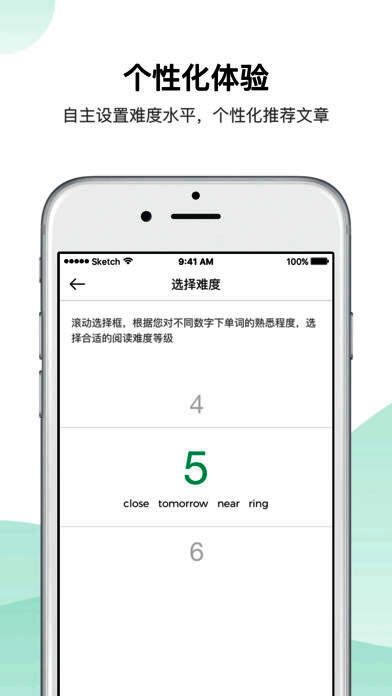 3、新单词?没关系!e读内置查词功能,轻轻一点,释义立现。 还可以选择自己难度水平的文章,让英文阅读轻松愉快。
