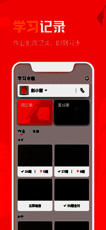 针对考试前复习的需求,《作业帮智能》还会自动整理出错误题本与生词本,形成结构清晰的知识点汇总,帮助孩子在考前快速定位薄弱项,实现精准复习,从而显著提高学习效率与成绩表现。