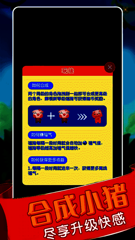 低层次仔猪被整合成高层次仔猪,通过升级赚取更多的黄金。