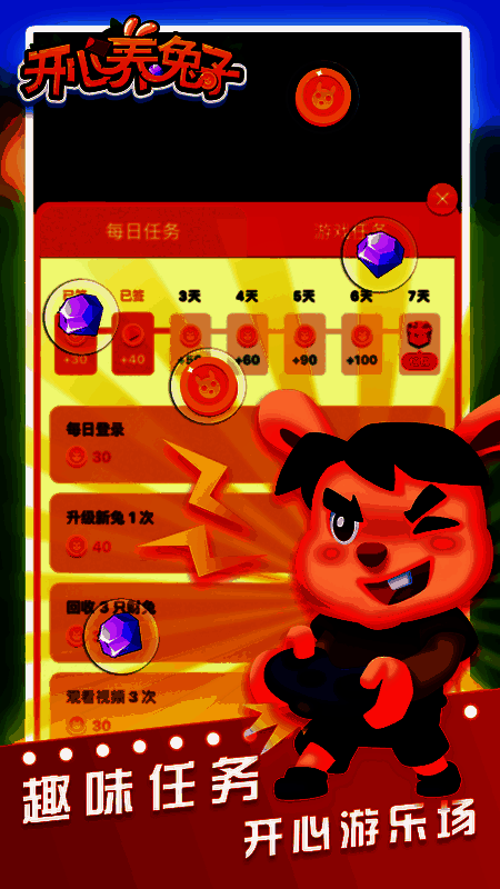 开心养兔子一款全新的养殖合成类赚钱软件,在这款游戏中用户可以合成各种高档兔子来获得收益;