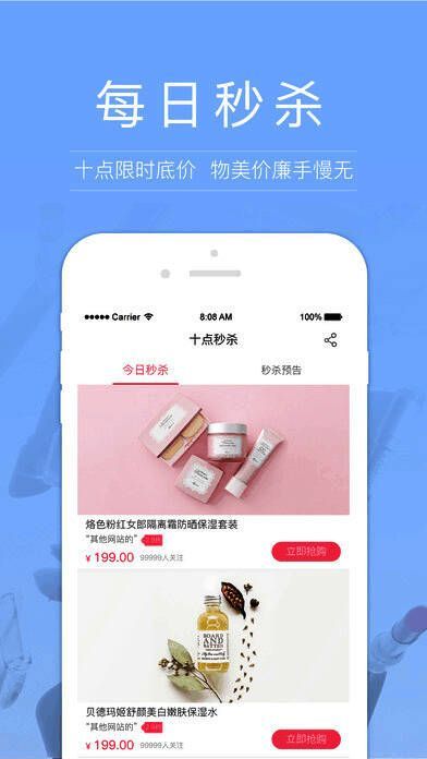 2、秒杀,在知我药妆上每天提供20-30款秒杀产品,全网最低价售卖;