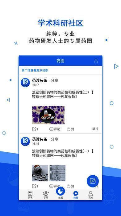 2、学院:药渡学院定期邀请行业人士做专业直播和线下沙龙,学院专注于提升用户对创新药与仿制药研发流程中的立项、合成、分析、ADME/PK研究、统计学、质量体系建设和政策法规等领域的专业能力;