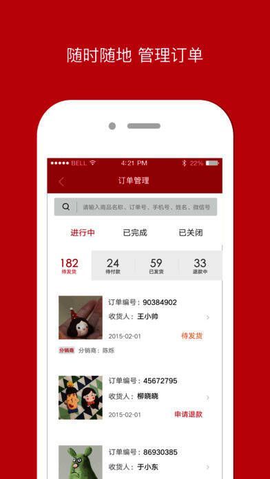 随时随地添加商品、查看订单,并可一键分享到微信、微博、QQ空间等多个平台。
