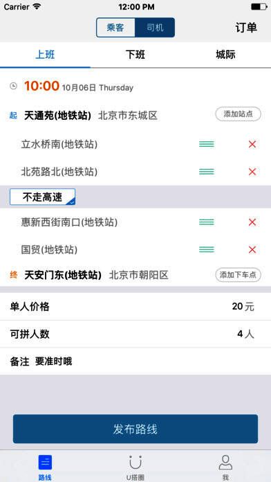 7、像公交车一样,车主设定数个上下车站点,乘客自由选择上下车站点。