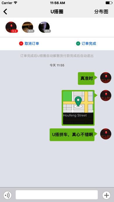 5、拼车的车主和乘客可在U搭圈内语音、文字、图片交流;