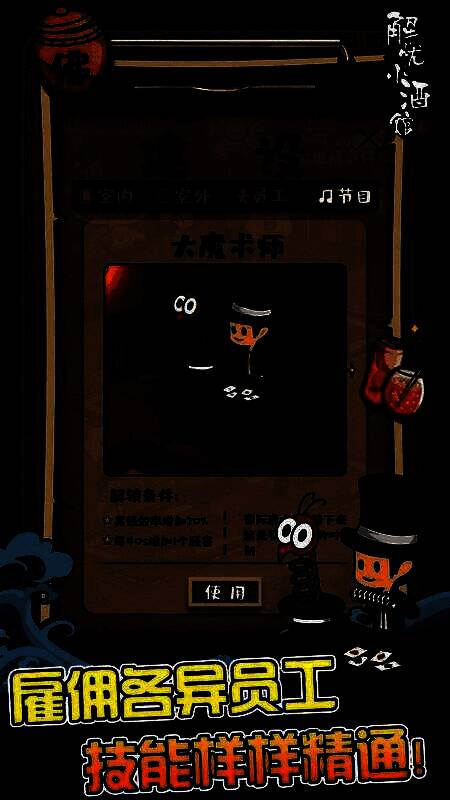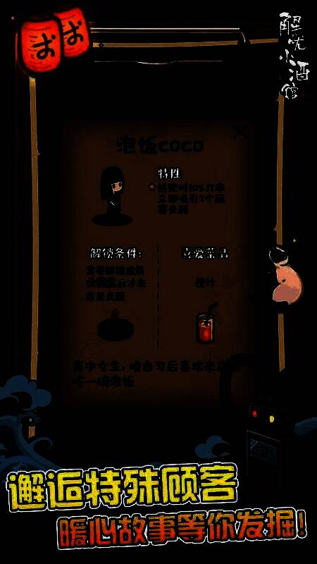 《解忧小酒馆》游戏背景设定在一家小酒馆,游戏中你会成为这家酒馆的老板,中途你需要为前来的顾客给予上等的服务,同时还得要尽可能满足好他们的需求,店子是需要不断经营的,只要用足够的盈利了你就能扩大店的面积!