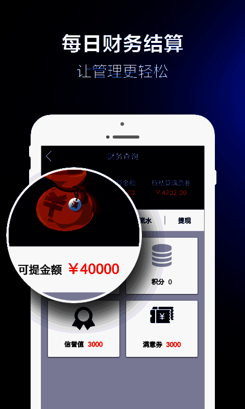 3、系统每天进行财务结算,自动生成报表推送,直接查询交易数据、一览余额总计、清楚了解店铺运营情况;