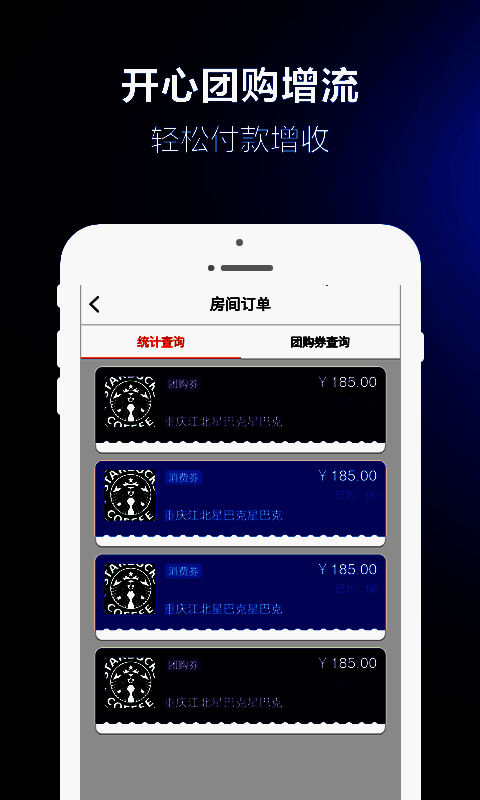 4、用户团购或消费券号,商家快速验证,直接扫码收款,用户便捷付款,店家轻松收款,增加客流,店家增收;