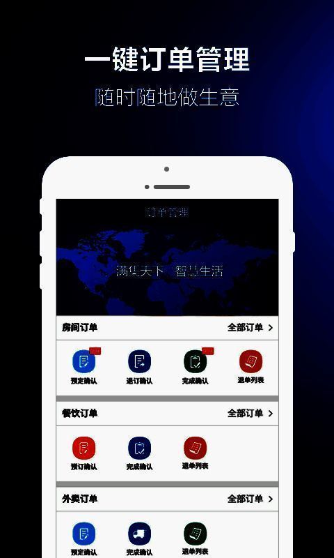 1、房间订单、餐饮订单、外卖订单、商品订单、售卷管理、随时随地接单,生意不耽误开单更轻松;