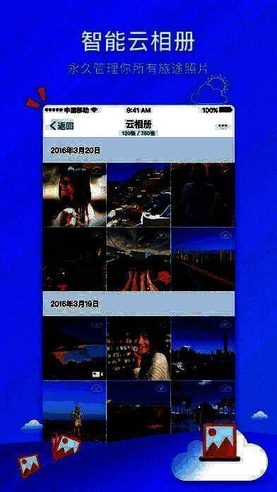 3、云相册:永久储存你的旅途相片,更有智能管理功能,查找、翻看很方便;