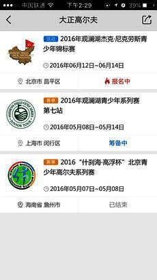 大正高尔夫app2015年大正高尔夫进行优质资源整合,创立全新的高尔夫城市冠军赛,打破传统高尔夫赛事运行格局,发挥移动互联网优势,以移动客户端为载体,打破时间与空间的界限,扩大赛事参与人群,以青少年球员为主体,兼顾业余组。