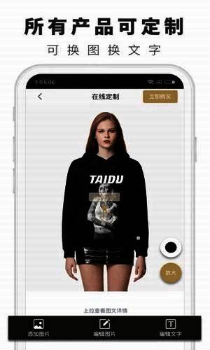 态度定制平台app是一款属于你的专属定制平台,不同的图案,不同的物品,主要你想要的都可以在这里找到,各种优质的定制服务专业为你提供,所有的设计用户可以自行改创,同时也可以找寻专业的设计师为你服务哦,一款图片处理软件,可以定制你的专属图片,操作简单,快速生成,是你处理图片的最佳软件;也是一个做定制的平台,全球品牌产品都可定制。更换产品上的图案,强大的P图功能,海量素材库,傻瓜式操作,一件起定,亲民价格。