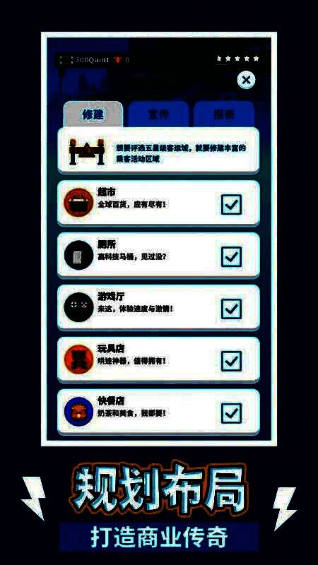 1.玩家可以建造各种建筑,如各种商店、休息区等,为乘客服务。