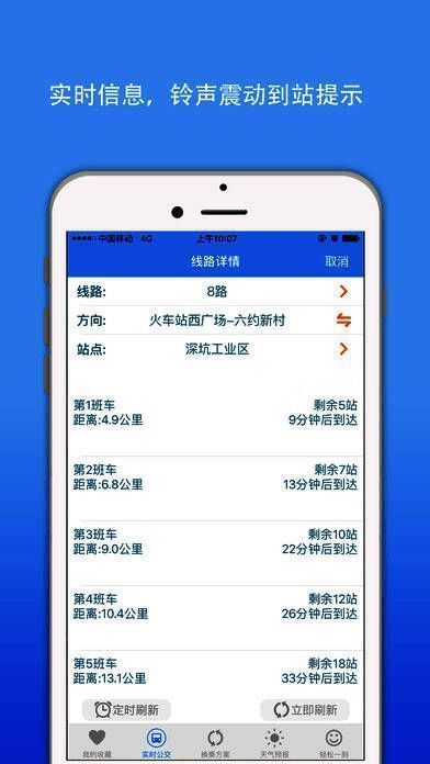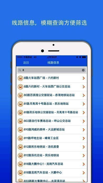 《深圳公交》是一款查看深圳市区实时公交信息的手机软件,在这里,你能够查看周边公交讯息,让你实时掌控出行计划,更有路线查询,站点查询,以及站到站查询,让你出行更容易!快来下载体验吧!