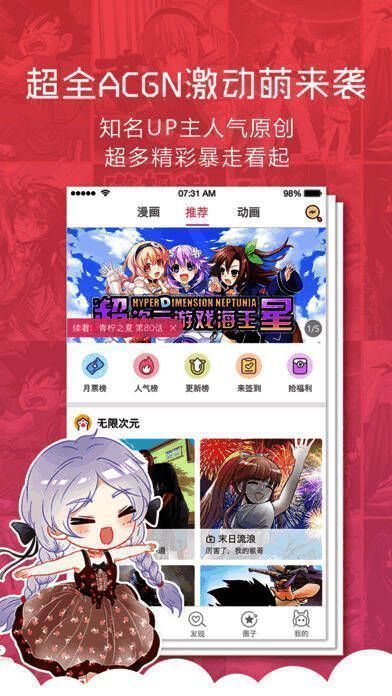 6、 活动时时有,好礼送不停。聚合各类热门活动专区,参与便捷,看动漫,抢好礼,玩的就是嗨。