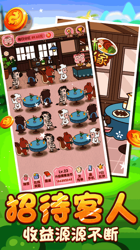 挂机收益,装饰自己的特色餐厅。