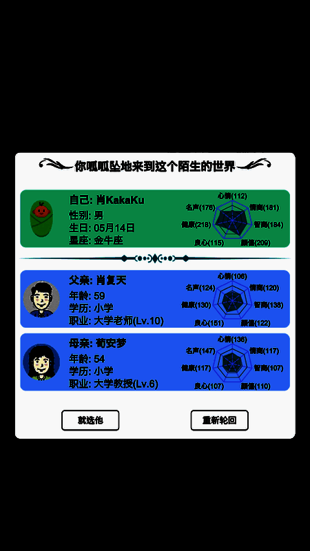 一款好玩的文字人生游戏,给玩家带来激情的模拟挑战,在游戏中,玩家可以从婴儿开始模拟,并在生活的道路上开始冒险挑战,在游戏中,玩家有丰富的选择,挑战更多的模拟选择和乐趣,生活中有许多谜题等着你去探索。