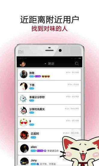 附近用户:有爱不躲藏,发现身边的帅哥闺蜜朋友怪咖小伙伴,表情、语音、视频发送即达。