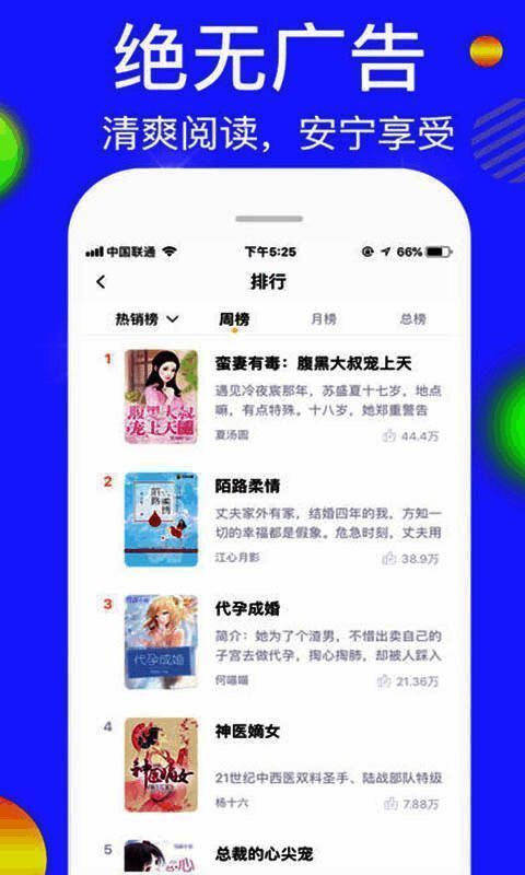 每天为你推荐好书,大热榜、完结榜、黑马榜、热搜榜,帮你花样找到当下最热好书,摆脱书荒,看完一本还想看。