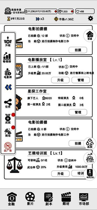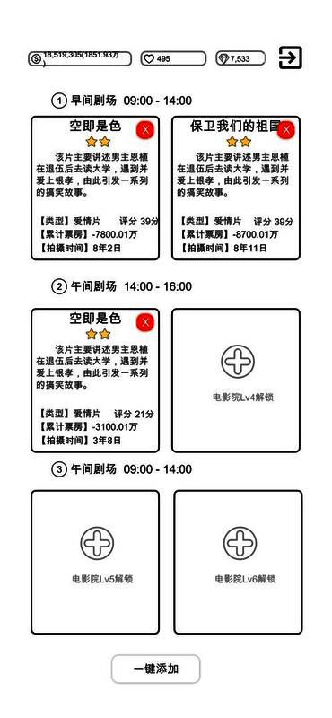 游戏中的竞争也是残酷的,只有出行好的电影才会赚取很多财富和流量。