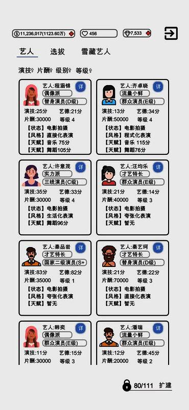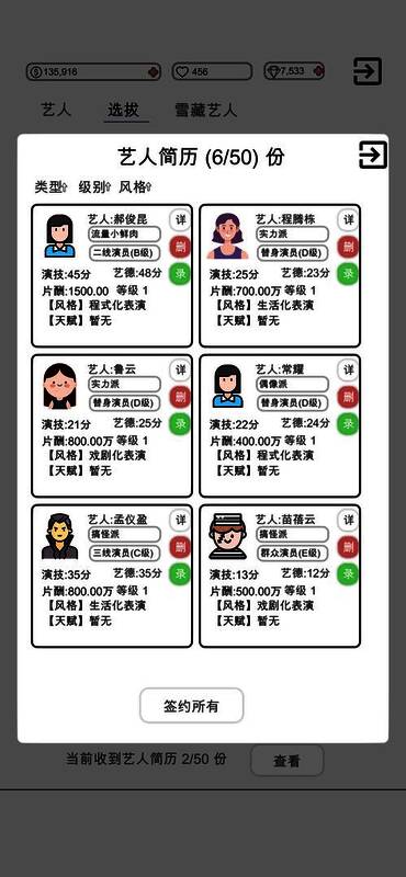 游戏中有2000名不同层次的明星艺人供您随意选择。