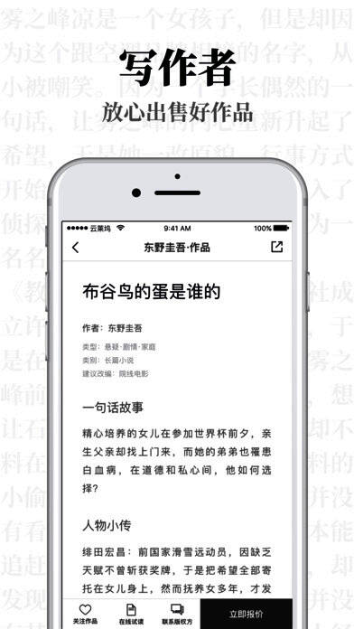 云莱坞是专业的编剧社区与影视版权交易平台。写作者(影视编剧、类型小说作家)在这能免费享受版权保护、版权交易、法务支持在内的一站式服务,同时云莱坞为优秀编剧提供专业经纪服务