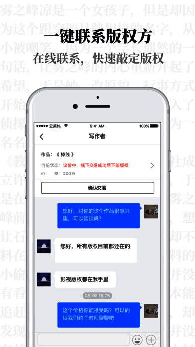 2、即时沟通:看到好故事,直接联系写作者/版权机构,即时沟通购买意向;