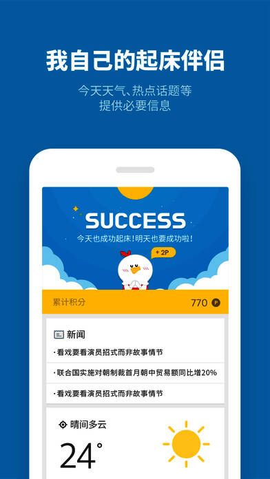 每天早晨,和怪物闹钟一起起床,我们给你带来各种可以获得福利的机会!只要按时起床而已,不要错过!