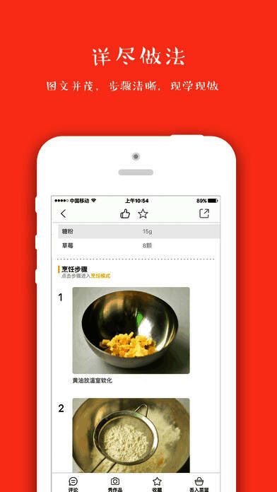 1、步骤详细:超详细的使用工具、所需食材、步骤图示,让你零失败的走入烘焙世界。