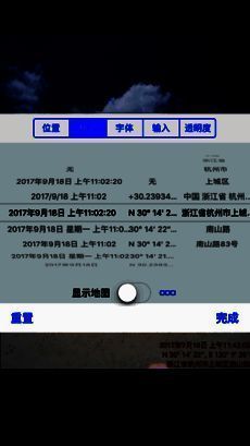 1、在拍照或者录像时添加当前时间和位置。您可以很容易地更改时间格式,或选择周围的地点。您还可以任意地设置时间地格式,在视频上的位置,改变字体,字体颜色,大小及透明度;