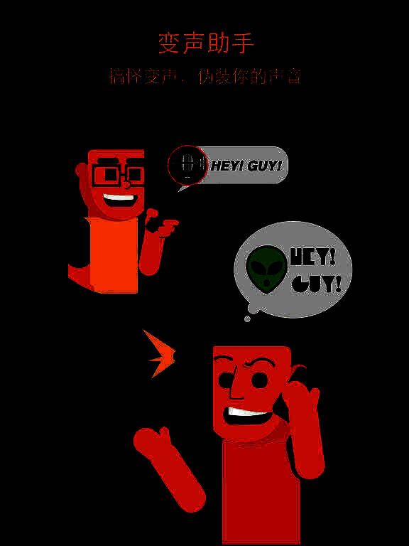 变身助手是一个搞笑好玩的变声器软件,它可以根据你的录音,变成其他声音特效,例如近期很火的Papi酱声音效果,机器人效果,蝙蝠侠效果,外星人效果等等。你也可以将变声音效通过微信,QQ发送给你朋友进行恶搞。快点下载试试看吧,伪装你的声音,给好友来个恶作剧。