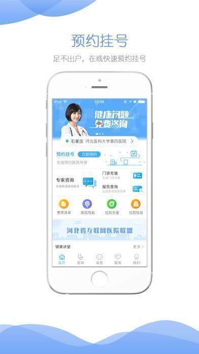 健康河北平台隶属于河北沁芳康健健康管理机构,是一款可以在移动终端上实现远程预约挂号的网上服务平台,健康河北平台可以选择不同的医院进行预约挂号操作,查看预约挂号记录,查询缴费单,检查检验单,医院、科室、专家信息,住院信息,价目表信息等。
