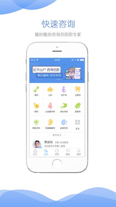 随时随地资讯各个医院的专家名医,了解自身病情;