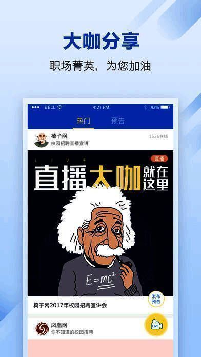 椅子网还创立了最具特色的视频简历服务,学生面试不必东奔西跑。致力打通招聘面试的“最后一公里”,线下校招与线上直播无缝对接,颠覆传统线下双选会、宣讲会模式,实现招聘与就业的效率最大化。