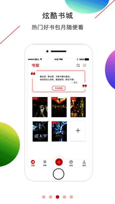 超炫的书城:书城、书架样式大改版,新增3种阅读主题背景、字体大小、夜间护眼模式、WIFI传书等实用功能,满足个性化阅读需求;