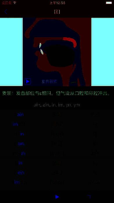 2、使用发音器官动画演示了每个音标发音的过程和技巧;